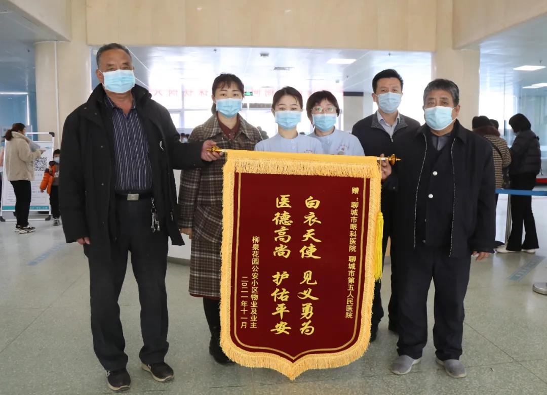11月24日上午,一面寫有“白衣天使 見義勇為 醫(yī)德高尚 護(hù)佑平安”字樣的錦旗,送到了聊城市眼科醫(yī)院領(lǐng)導(dǎo)楚媛和神經(jīng)眼科護(hù)士王杰手中,贈送錦旗的是來自聊城市柳泉花園公安小區(qū)物業(yè)的管理者,他們對王杰看到路人昏迷,緊急跪地施救的高尚行為給以贊揚(yáng)。